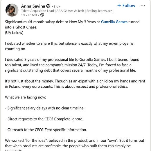 GUNZILLA GAMES DIDN’T PAY EMPLOYEES?