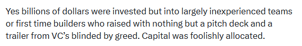 A couple of years back, it was relatively easy to raise a sizeable round ($5M+) through only a pitch deck if you used the right cluster of buzzwords. We all know now how much of that capital was put to use to push this industry forward (close to 0%).