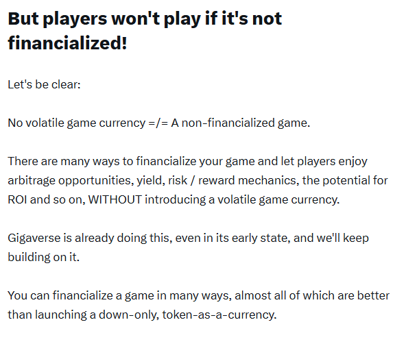 Overall, the fundamentals are more about “Web2.5 solutions” than something that is purely Web3 or aligned with crypto’s decentralized ethos. Yet, it isn’t an opposing vision of the “financialization of gaming” view. I see them as complementary.