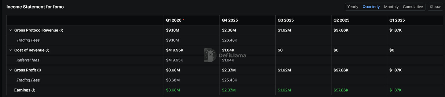 Fomo’s revenue numbers, according to DefiLlama:
